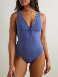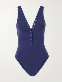 EDITORS'NOTES Eres's 'Les Essentiels Icone' swimsuit is made from signature peau douce fabric that's designed to sculpt and contour your curves. It has a scooped back and an adjustable V-neckline. Style it with a pareo for poolside drinks. Small to size. See Size & Fit notes. SIZE & FIT - Fits small to size, take one size larger than normal - Full brief coverage - French sizing DETAILS & CARE - Blue stretch-polyamide - Snap fastenings along front - 84% polyamide, 16% spandex - Machine wash - Designer color: Sirene - Lotion, sunscreen, oil and chlorine can cause discoloration of this item; this is not a manufacturing defect. Please follow care instructions to keep your swimwear in the best condition