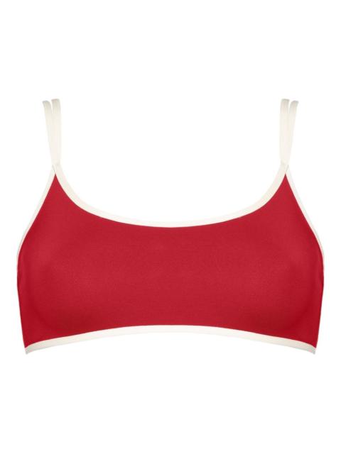 Iman bikini top Highlights - Red - Contrasting trim - Double straps - Scoop neckline - Seamless design Made In Italy Composition Polyamide 77%, Spandex/Elastane 23% SIZE & FIT FittingInformation This piece fits small – take one size up Washing instructions Machine Wash
