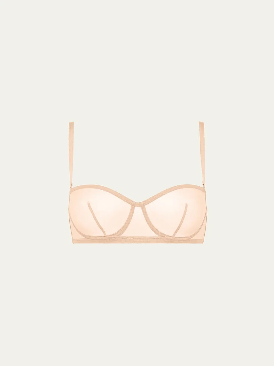 Eres "Indiscrète" bra in stretch tulle Underwire balconette bra Multi-way removable, adjustable straps Vertical bust darts Gripper tape holds bra in place Hook-and-eye back closure Polyamide/spandex Machine wash Made in Morocco Model is 5'10"/177cm. Online Inquiries: BGS21_I2DZ3| Store Inquiries: #4451576