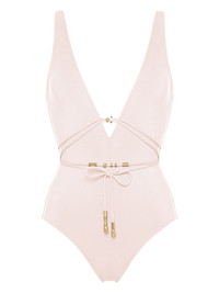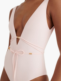 Lagon swimsuit Highlights - Pink - Front tie fastening - V-neck - Open back - Be mindful to try on swimwear over your own garments. Imported Composition Polyamide 77%, Spandex/Elastane 23%