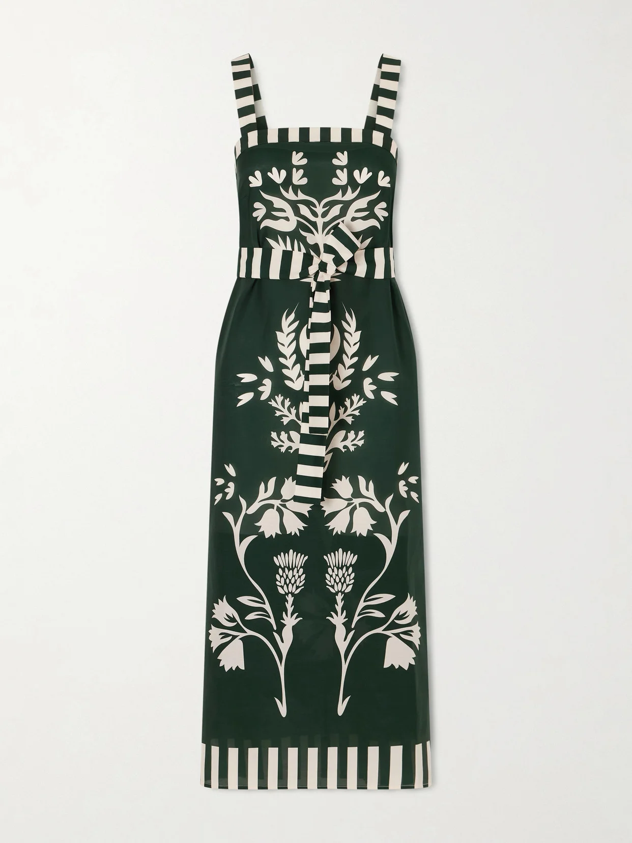 Lakshya Belted Printed Cotton And Silk-blend Midi Dress