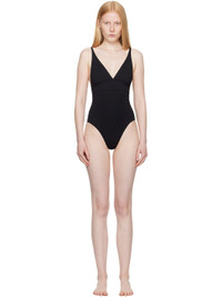 Stretch nylon jersey one-piece swimsuit. · V-neck · Fixed shoulder straps · Low back · Fully lined Supplier color: Noir N 84% polyamide, 16% elastane. Made in France 252780F103004