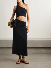 Legende one-shoulder embellished cutout stretch-jersey maxi dress Black