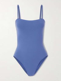 EDITORS'NOTES Feeling confident on vacation is easy if you invest in a well-made swimsuit. This blue 'Aquarelle' one-piece by Eres from their 'Les Essentiels' collection is cut from its signature sculpting peau douce fabric and has a square neckline and thin straps. The minimalist look allows for endless styling options. Small to size. See Size & Fit notes. SIZE & FIT - Fits small to size, take one size larger than normal - Medium brief coverage - Model is 175cm/ 5'9", bra size 32C and is wearing a FR 38 DETAILS & CARE - Blue stretch-polyamide - Pulls on - 84% polyamide, 16% elastane - Machine wash - Designer color: Siren - Lotion, sunscreen, oil and chlorine can cause discoloration of this item; this is not a manufacturing defect. Please follow care instructions to keep your swimwear in the best condition