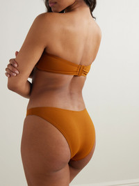 Eres' 'Show' bikini top is perfect for lounging poolside on vacation - the bandeau shape ensures minimal tan lines. Part of the 'Les Essentiels' collection, it's made from the label's signature body sculpting peau douce fabric in an earthy 'Bark' shade. Small to size. See Size & Fit notes. Size & Fit - Fits small to size, take one size larger than normal - Those with a C cup or above may wish to take a further size up - French sizing Details & Care - Brown stretch-polyamide - Clasp fastening at back - 84% polyamide, 16% elastane - Machine wash - Designer color: Bark - Lotion, sunscreen, oil and chlorine can cause discoloration of this item; this is not a manufacturing defect. Please follow care instructions to keep your swimwear in the best condition