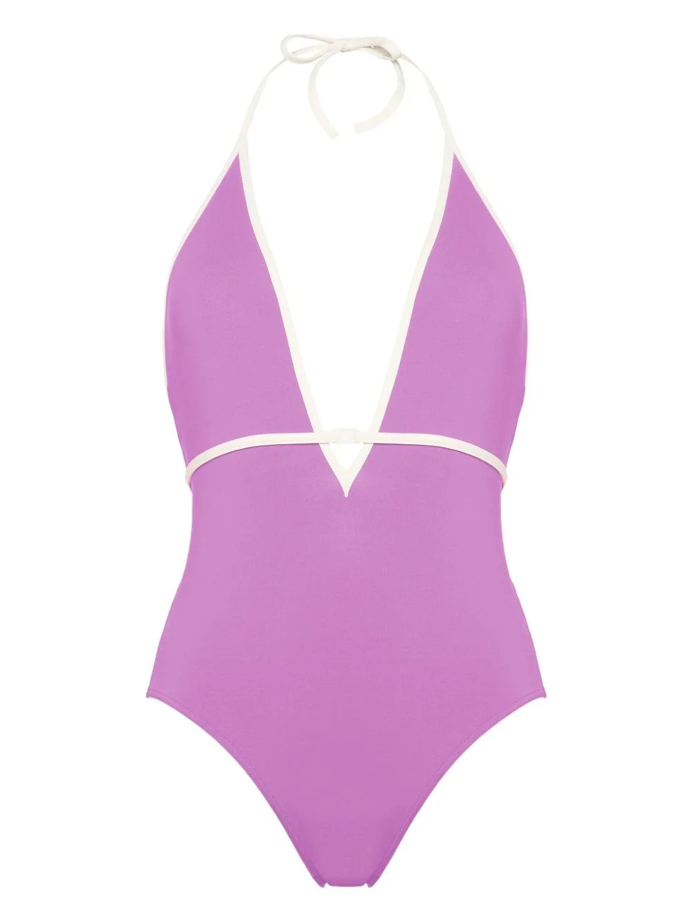 Loulou swimsuit Highlights - Lilac purple - Contrasting trim - V-neck - Halterneck tie fastening - Be mindful to try on swimwear over your own garments. Made in Italy Composition Polyamide 77%, Spandex/Elastane 23% SIZE & FIT FittingInformation This piece fits small – take one size up Washing instructions Machine Wash