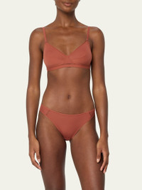 Eres "Lydia Soyeuse" bra made in recycled polyamide jersey with lace inset Wireless triangle cups Adjustable shoulder straps Horizontal darts for added shape Hook-and-eye back closure Polyamide/spandex Machine wash Made in France Model is 5'10"/177cm. Online Inquiries: BGS21_I2DZ9| Store Inquiries: #4451582
