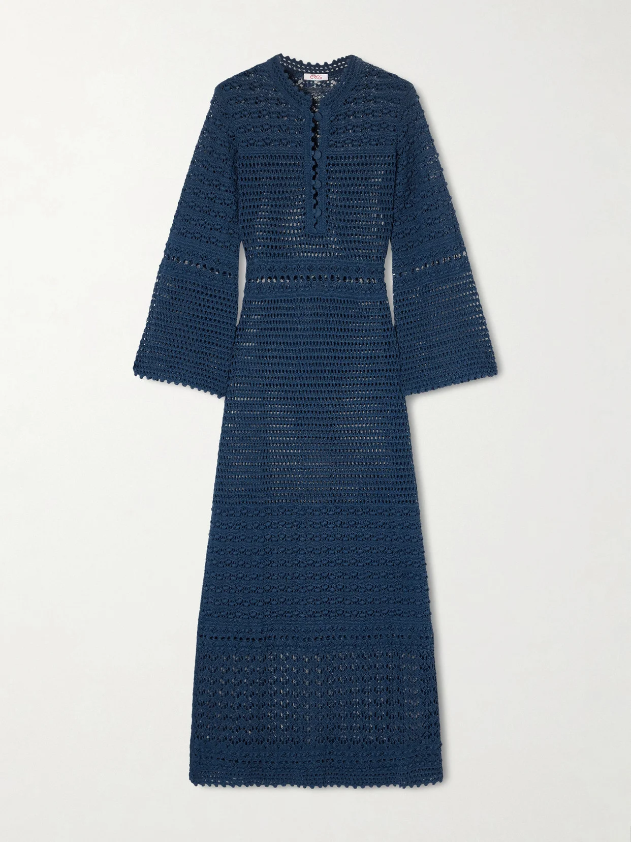 Eres' 'Madone' dress is a gorgeous choice for your vacation capsule. It's knitted in a mix of open stitches, creating an intricate pattern and elegantly exposing glimpses of skin. The gently flared sleeves and half-button placket are so elegant.