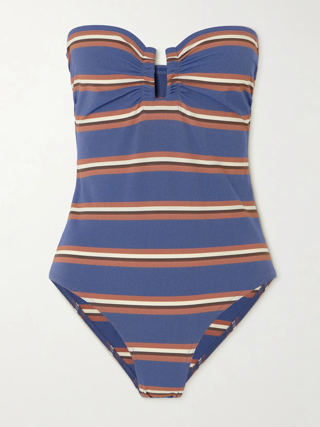 Eres' 'Amiral' swimsuit is decorated with 'Mariniere' jacquard-woven stripes inspired by both classic Breton ones and those seen on deck chairs. It's been made in Italy from supportive stretch fabric and has a strapless neckline centered around a signature U-ring. Add a pareo or breezy pants when heading to lunch. Large to size. See Size & Fit notes.