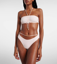Having revolutionized swimwear in the 1970s, Eres has a legacy of elegant and streamlined silhouettes that flatter every figure. Pair the Melia bikini bottoms with the matching halterneck bikini top for a timeless poolside look. Product Details - Material: 77% polyamide, 23% elastane - Care instructions: machine wash at 30 degrees - Made in France - Designer color name: Eau De Rose - Item color: pink - Hardware color: gold - Lining: 68% polyamide, 32% elastane - Elasticated waistband - Item number: P01063577 Size & Fit - True to size - Minimal coverage - Medium-cut leg - The model seen in the picture is 178cm-5'10" and wearing a size FR 36