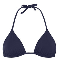 Mouna triangle bikini top Highlights - Navy blue - Triangle cup - Halterneck tie fastening - Rear tie fastening - Be mindful to try on swimwear over your own garments. Made in France Composition Polyamide 84%, Spandex/Elastane 16% SIZE & FIT FittingInformation This piece fits small – take one size up