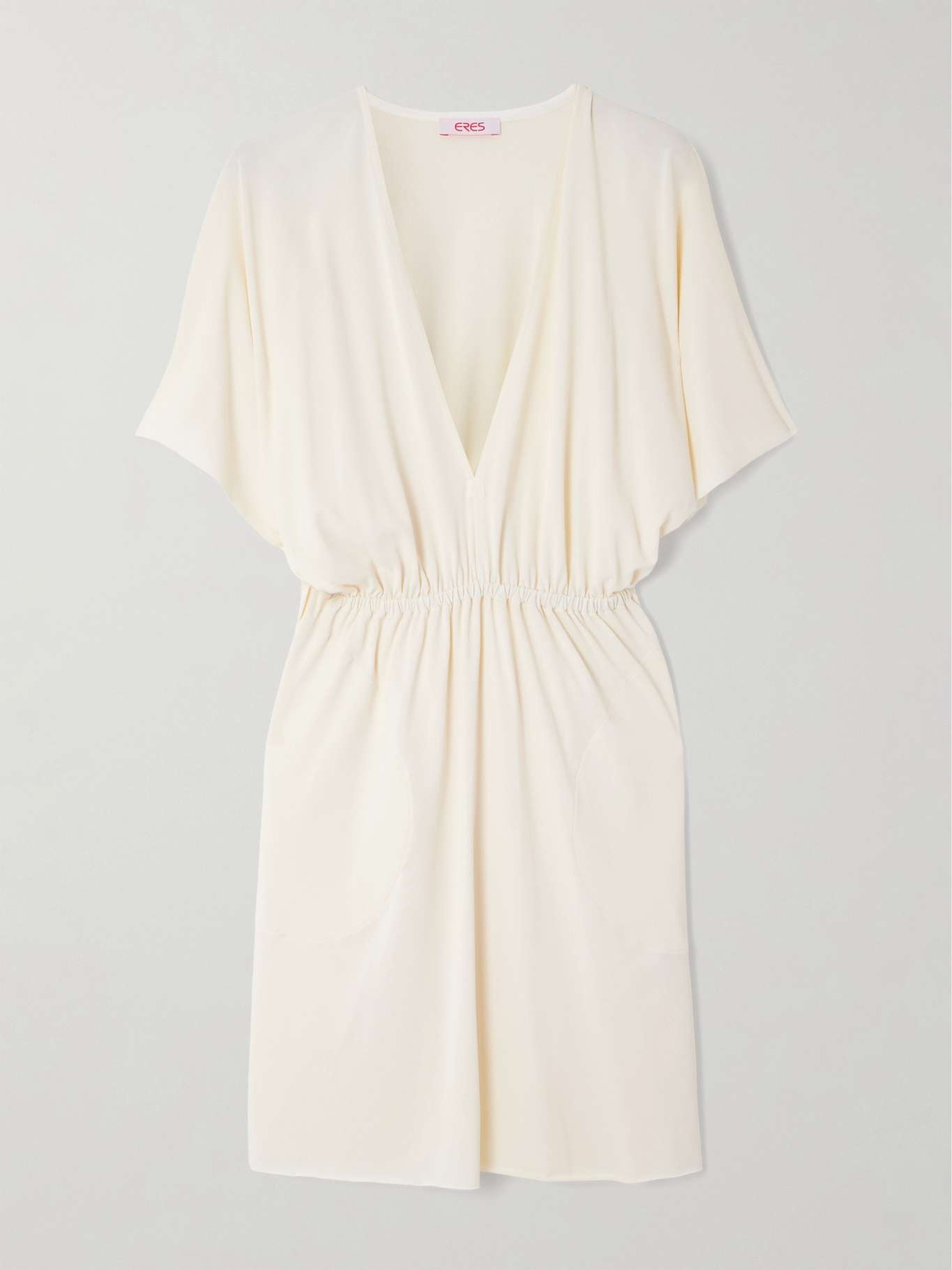 EDITORS'NOTES Eres' 'Naia' dress is effortlessly chic and comfortable to wear, whether you're heading to the beach or plans in the city. Made from comfortable jersey, it has a deep V-neckline and an elasticated waist to cinch the floaty shape. SIZE & FIT Model measurements: - Fits true to size, take your normal size - Designed for a slightly loose fit - Elasticated at the waist for a flexible fit - Lightweight, stretchy fabric - Model is 180cm/ 5'11" and is wearing a size Small - Bust: 75cm/ 29.5" - Waist: 60.5cm/ 24" - Hip: 88.5cm/ 35" DETAILS & CARE - Off-white jersey - Slips on - 94% polyamide, 6% elastane - Machine wash