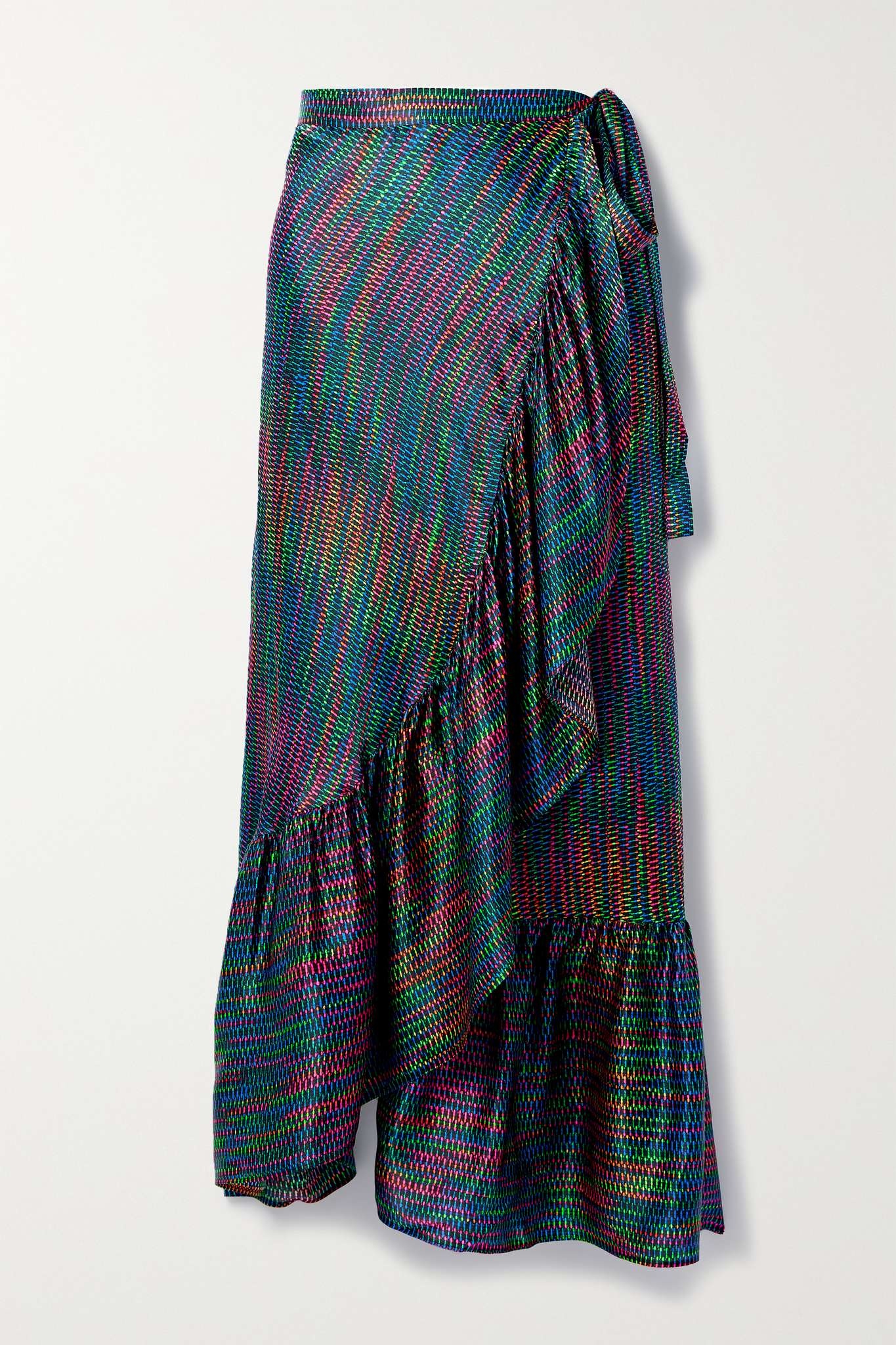 Néon ruffled printed silk pareo