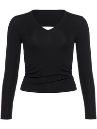 Nezha top Highlights - Black - Silk blend - Fine ribbed - Embroidered logo to the rear - Gathered detailing - V-neck - Long sleeves - Open back - Cropped Made in Italy Composition Viscose 89%, Silk 11% SIZE & FIT FittingInformation This piece fits small – take one size up