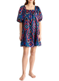 DESCRIPTION - rectangular neckline - printed - mini dress - three-quarter-sleeved DETAILS AND CARE MATERIAL: 100% Silk COLOR: imprime_arc_en_ciel COUNTRY OF MANUFACTURE: Bulgaria PRODUCT CODE: EREEJA9TMULS2AAA00