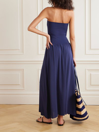 Eres' 'Oda' maxi dress can be styled in a variety of ways, so there'll be more room in your suitcase for shoes - wear it over a bikini as a coverup, or as a skirt with the sculpting bodice folded down. It's made from smooth stretch-jersey that skims the body. Size & Fit - Fits true to size, however those who are between sizes should take the smaller size - Designed for a slim fit - Mid-weight, stretchy fabric - Model is 175cm/ 5'9" and is wearing a size Small Model measurements: - Bust: 85cm/ 33.5” - Waist: 63cm/ 25” - Hip: 90cm/ 35.5” Details & Care - Navy stretch-jersey - Slips on - 94% polyamide, 6% elastane - Machine wash - Designer color: Nautique - Lotion, sunscreen, oil and chlorine can cause discoloration of this item; this is not a manufacturing defect. Please follow care instructions to keep your swimwear in the best condition