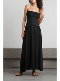 Eres' 'Oda' maxi dress can be styled in a variety of ways, so there'll be more room in your suitcase for shoes - wear it over a bikini as a coverup, or as a skirt with the sculpting bodice folded down. It's made from stretch-jersey in a versatile black hue that's flattering against all skin tones. Underpin yours with a smoothing strapless bra. Size & Fit - 1 = S/M - 2 = M/L - 3 = L/XL - Fits true to size, take your normal size - Designed to be fitted at the bust and waist, loose at the hip - Intended to be worn multiple ways - Lightweight, stretchy fabric - Model is 175cm/ 5'9" and is wearing the designer's size 1 Details & Care - Black stretch-jersey - Slips on - 94% polyamide, 6% spandex - Machine wash