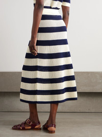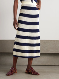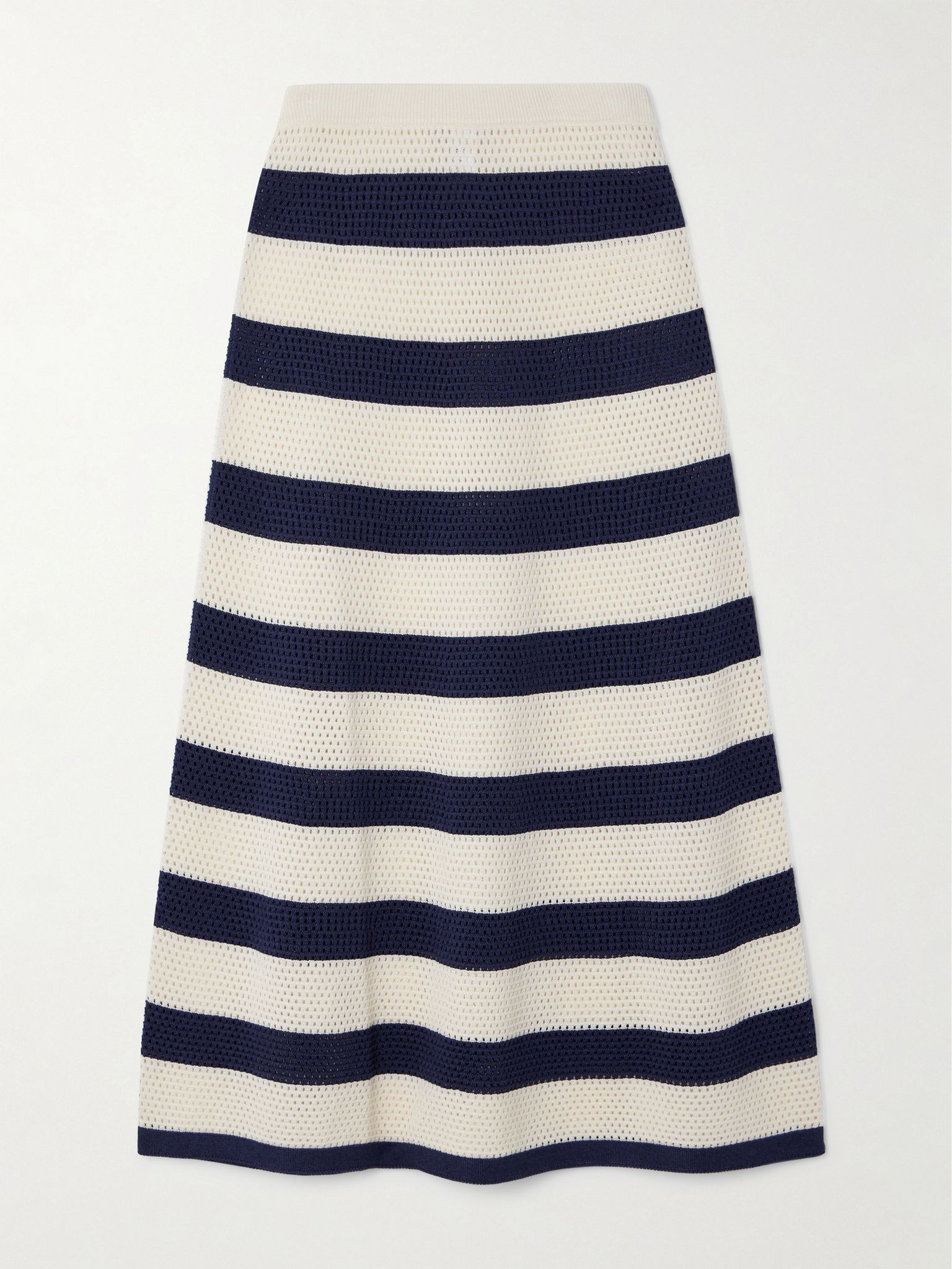 Bayadere Bateau striped open-knit cotton-blend midi skirt Blue