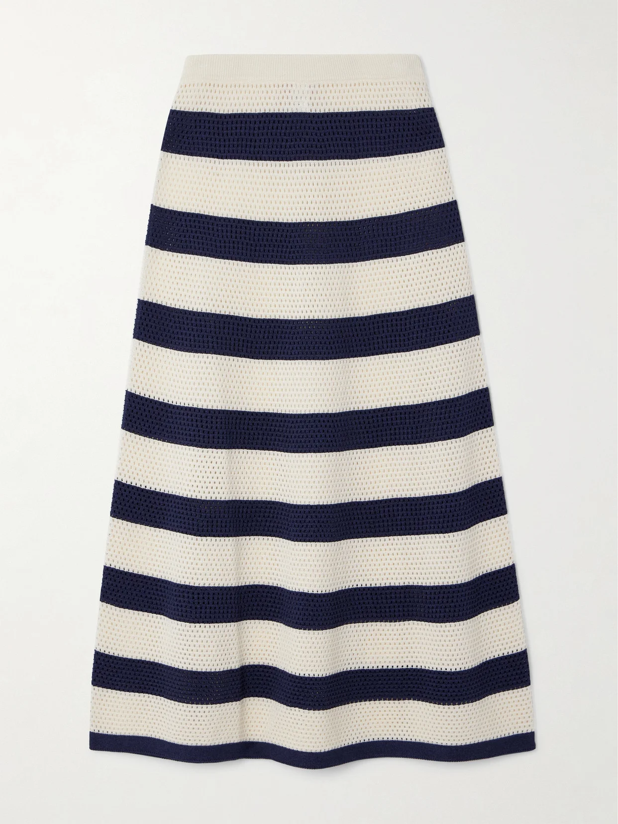 Bayadere Bateau Striped Open-knit Cotton-blend Midi Skirt