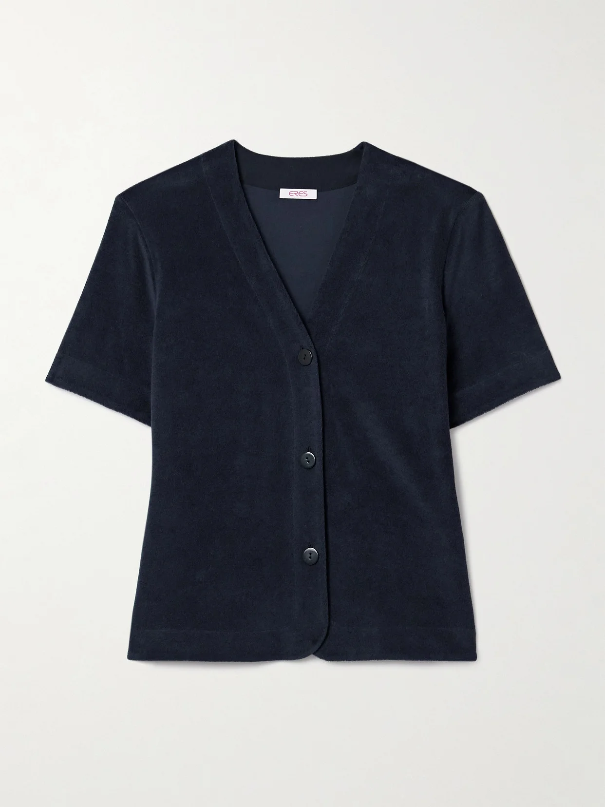 Eres' designs are must-haves when packing for balmy destinations. Part of a set with the matching shorts, this 'Paresse' top is cut for a relaxed fit from soft cotton-terry in an inky 'Ultra' shade. Wear it over your bikini while poolside.
