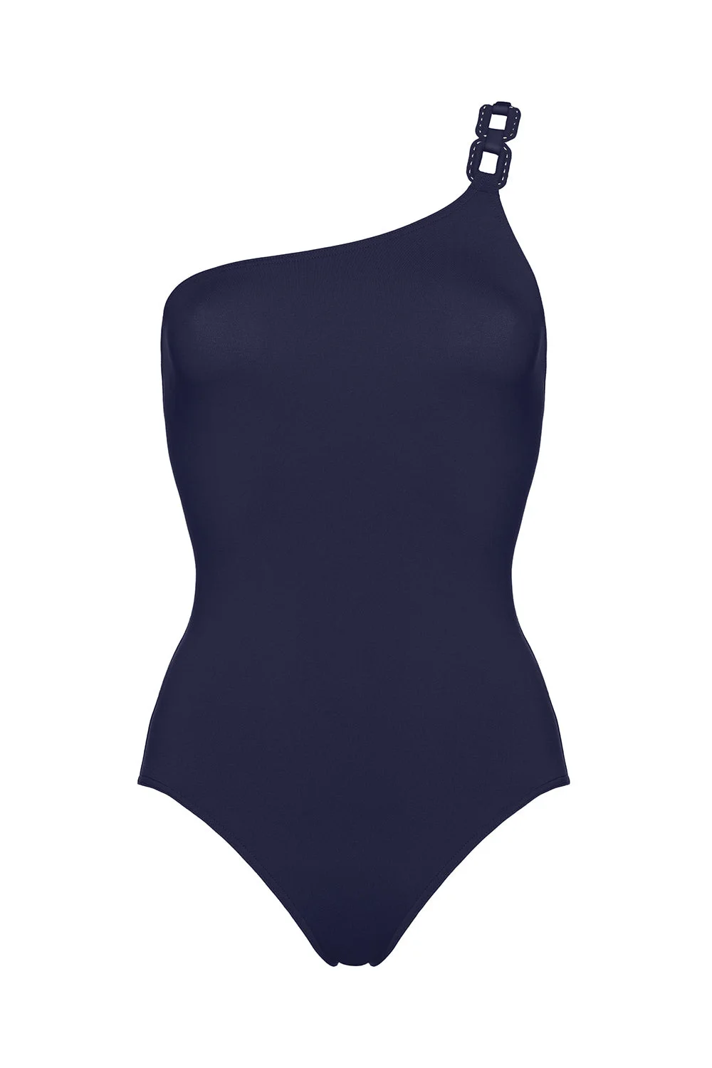 DETAILS AND INSIGHT Eres coulisses plaisance one piece in nautique. 77% polyamid, 23% spandex Machine Wash Cold Imported Style 012512-NAUTIQUE