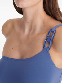 Plaisance swimsuit Highlights - Lavender blue - Single shoulder strap - Eyelet detailing - Be mindful to try on swimwear over your own garments. Made in France Composition Polyamide 77%, Spandex/Elastane 23% SIZE & FIT FittingInformation This piece fits small – take one size up