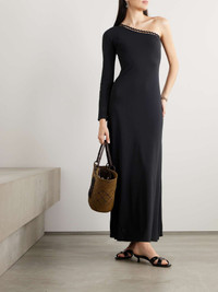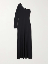 Just like Eres' signature swimwear and lingerie, its dresses are impeccably cut from fabrics that encourage confidence. This 'Play' maxi style is made from figure-hugging stretch-jersey that flares out at the hem and has a one-sleeve design emphasized by ric rac trims - they appear to float over your skin. Size & Fit - Fits true to size, take your normal size - Designed for a slim fit - Lightweight, stretchy fabric - Model is 175cm/ 5'9" and is wearing a size Small Model measurements: - Bust: 78cm/ 31" - Waist: 62cm/ 24.5" - Hip: 92cm/ 36" Details & Care - Black stretch-jersey - Slips on - 94% polyamide, 6% elastane - Machine wash