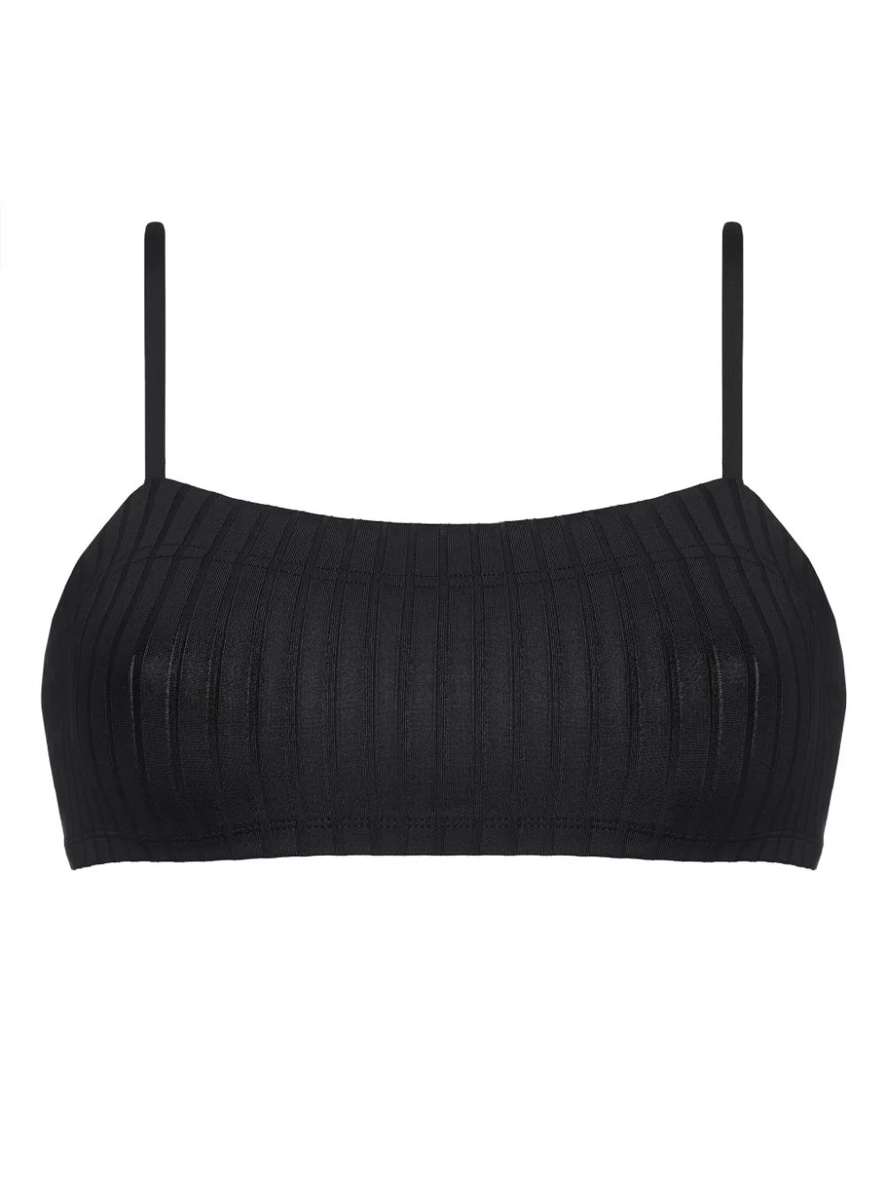 Praia ribbed bikini top Highlights - Jet black - Stretch-design - Ribbed knit - Square neck - Thin shoulder straps - Sleeveless - Be mindful to try on swimwear over your own garments. Made in France Composition Polyamide 90%, Spandex/Elastane 10% SIZE & FIT FittingInformation This piece fits small – take one size up