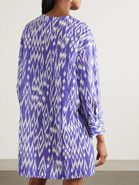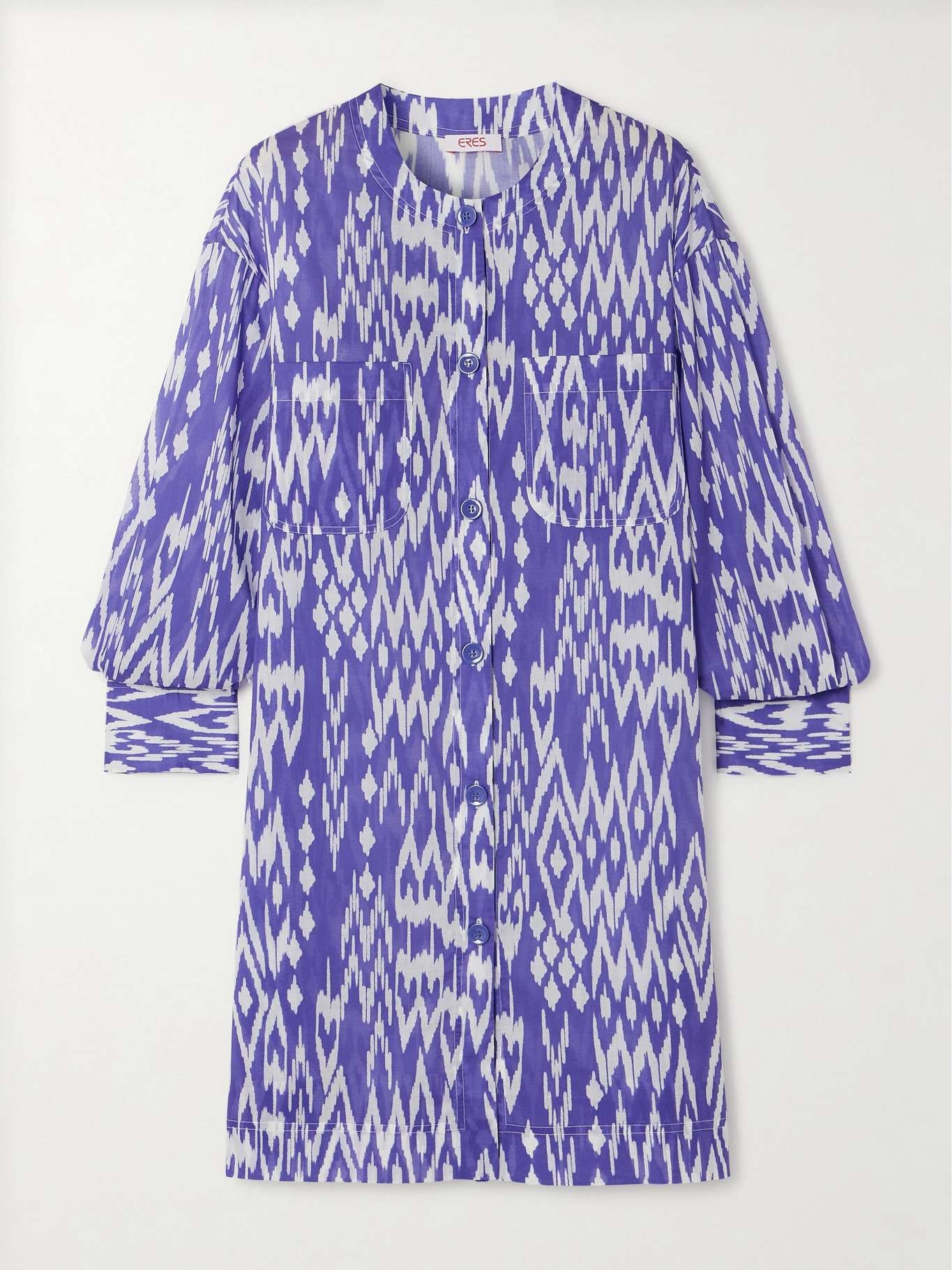 EDITORS'NOTES Made from cotton-voile, Eres’ mini shirt dress is printed with a bold ikat-inspired 'Hurricane' motif. It's cut for a relaxed fit and slips easily on over swimwear. Style yours with a floppy hat and sunglasses. SIZE & FIT Model measurements: - Fits true to size, take your normal size - Take the next size down if you wish to achieve a closer fit - Designed for a loose fit - Lightweight, non-stretchy fabric - Model is 180cm/ 5'11" and is wearing a size Small - Bust: 80cm/ 31.5" - Waist: 65cm/ 25.5" - Hip: 79cm/ 31.1" DETAILS & CARE - Purple and white cotton-voile - Button fastenings through front - 100% cotton - Machine wash or dry clean