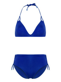 Remix Java triangle bikini set Highlights - Indigo blue - Stretch-design - Tonal design - Bikini top - V-neck - Moulded cup - Halterneck tie fastening - Rear clasp fastening - Bikini bottoms - High waist - Gathering at the hip - Side tie fastening - High cut - Unlined - Be mindful to try on swimwear over your own garments. Imported Composition Polyamide 84%, Elastane 16% Washing instructions Machine Wash