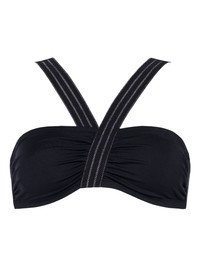 Rendez-vous cross-strap bikini top Highlights - Black - Ruched detailing - Wide cross-strap design - Structured cups - Contrasting striped accents - Be mindful to try on swimwear over your own garments. Made in Italy Composition Polyamide 77%, Spandex/Elastane 23% Washing instructions Machine Wash