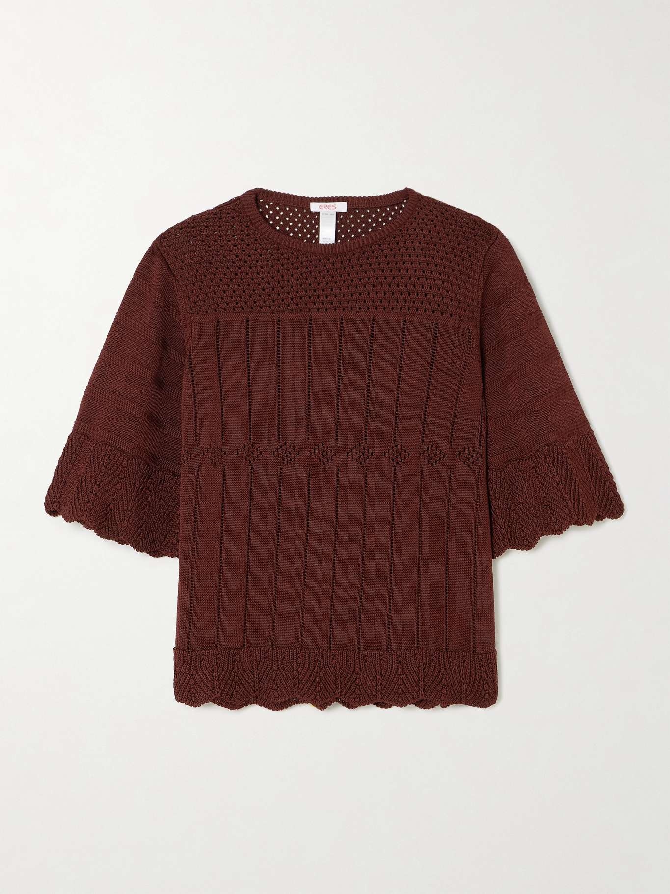 Chimère Reverie open-knit cotton-blend top Chocolate