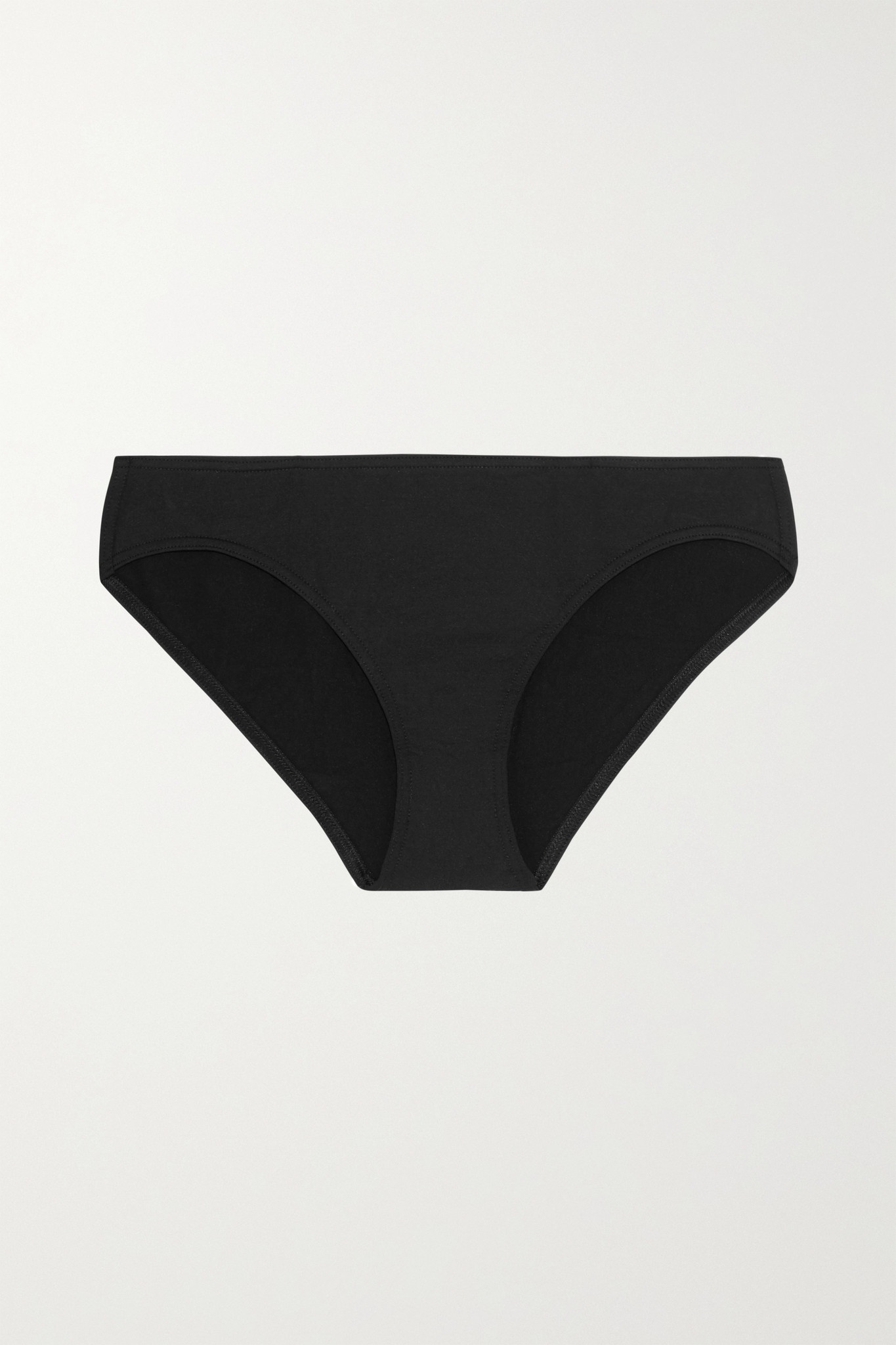 EDITORS'NOTES Eres' signature peau douce fabric is soft, comfortable and provides light support. These classic black bikini briefs have a mid-rise waist with medium coverage. They'll never date, making them a wise investment. Wear it with: [Eres Bikini top id1107793], [Alexander McQueen Sunglasses id1105643]. SIZE & FIT - Fits small to size, take one size larger than normal - Low-rise briefs with medium coverage - French sizing DETAILS & CARE - Black stretch-polyamide - Lined at base - 77% polyamide, 23% elastane - Machine wash - Made in France