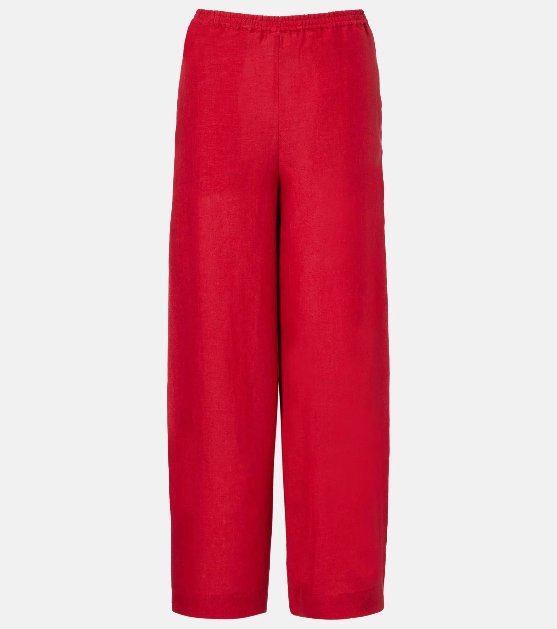 The Select pants from Eres offer both comfort and style with the elasticated waistband, wide-leg silhouette, and chic linen construction. The breezy design comes with two patch pockets on the sides and back. Product Details - Material: 100% linen - Care instructions: machine wash at 30 degrees - Made in Bulgaria - Designer color name: Reinette 25H - Item color: red - Elasticated waistband - Pockets: side slit pockets, back pockets - Item number: P01105365 Size & Fit - Fits small to size - we recommend trying one size larger - Elasticated waist - Non-stretchy fabric - Wide-leg - The model seen in the picture is 178cm-5'10" and wearing a size FR 38