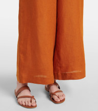 Crafted from lightweight linen, the Select wide-leg pants from Eres ensure breathability and all-day comfort. This design is cut to a relaxed silhouette and is complete with side pockets. Product Details - Material: 100% linen - Care instructions: machine wash at 30 degrees - Made in Bulgaria - Designer color name: Ecorce - Item color: brown - Pockets: side slit pockets, back pockets - Item number: P01042084 Size & Fit - Fits small to size - we recommend trying one size larger - Semi-sheer - Elasticated waist - Non-stretchy fabric - Wide-leg - The model seen in the picture is 178cm-5'10" and wearing a size FR 38