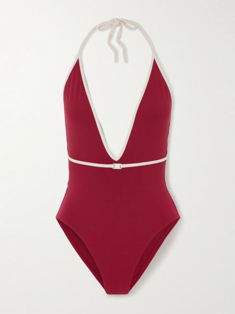 Reinette Sharon belted two-tone swimsuit Red
