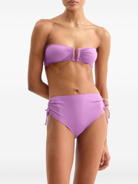 Show bandeau bikini top Highlights - Purple - Gathered front - Strapless design - Clasp fastening at back - Be mindful to try on swimwear over your own garments. Made in Italy Composition Polyamide 84%, Spandex/Elastane 16% SIZE & FIT FittingInformation This piece fits small – take one size up Washing instructions Machine Wash