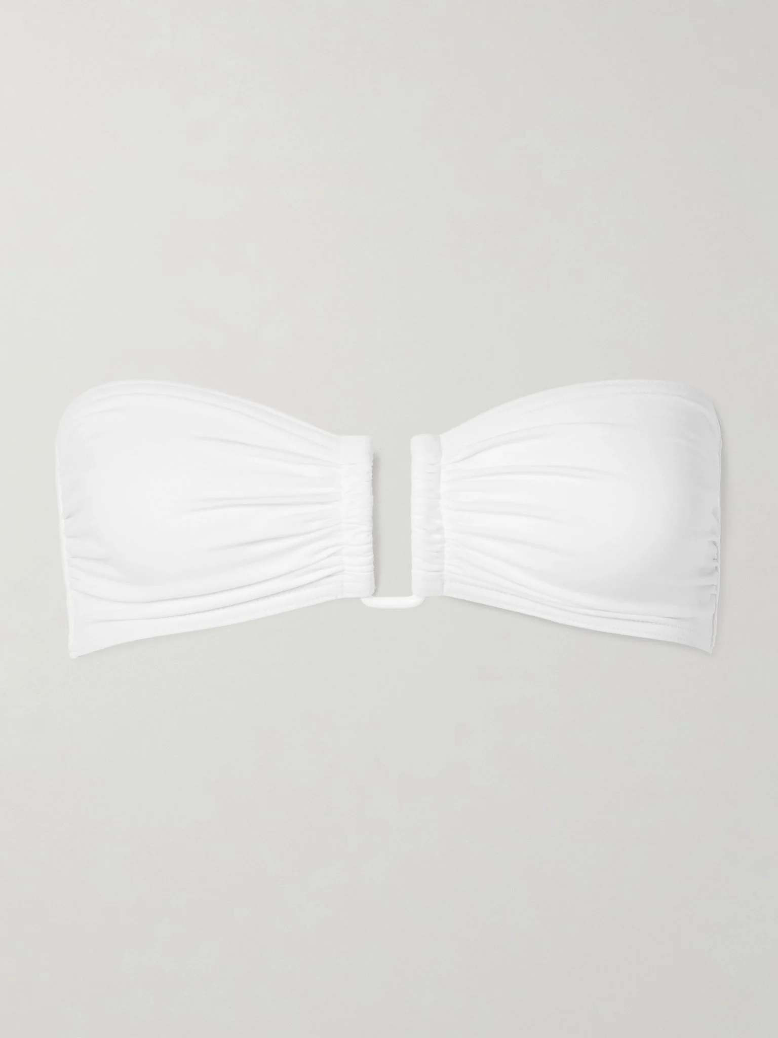 Eres knows it's smart to invest in classic swimwear that'll remain relevant for seasons to come. Made from sculpting peau douce fabric, this 'Show' bikini top has a bandeau design with U-shaped hardware that creates ruching through the cups. It'll look great with so many of the brand's briefs. Size & Fit - Fits true to size, take your normal size - Those with a D cup or above may wish to take the next size up - French sizing Details & Care - White stretch-polyamide - Clasp fastening at back - 84% polyamide, 16% elastane - Machine wash - Lotion, sunscreen, oil and chlorine can cause discoloration of this item; this is not a manufacturing defect. Please follow care instructions to keep your swimwear in the best condition
