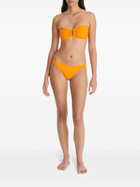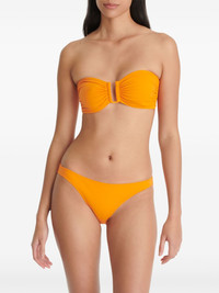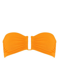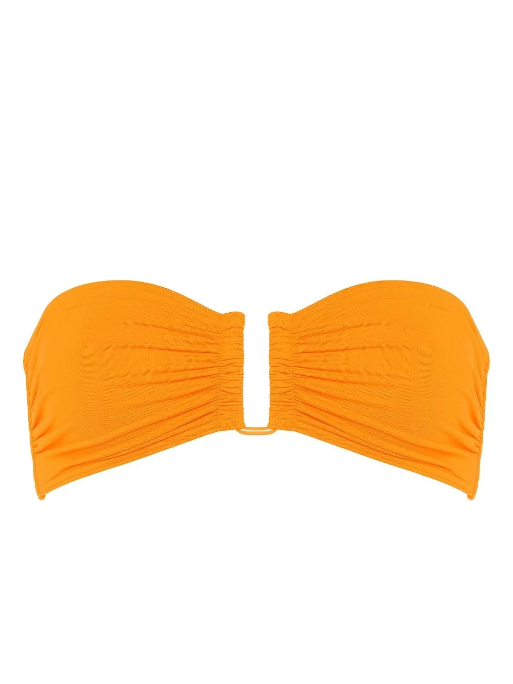 Show bandeau bikini top Highlights - Carrot orange - Stretch-design - Ruched detailing - Bandeau style - Rear buckle fastening - Strapless - Elasticated underband - Be mindful to try on swimwear over your own garments. Made in Italy Composition Polyamide 84%, Spandex/Elastane 16% SIZE & FIT FittingInformation This piece fits small – take one size up