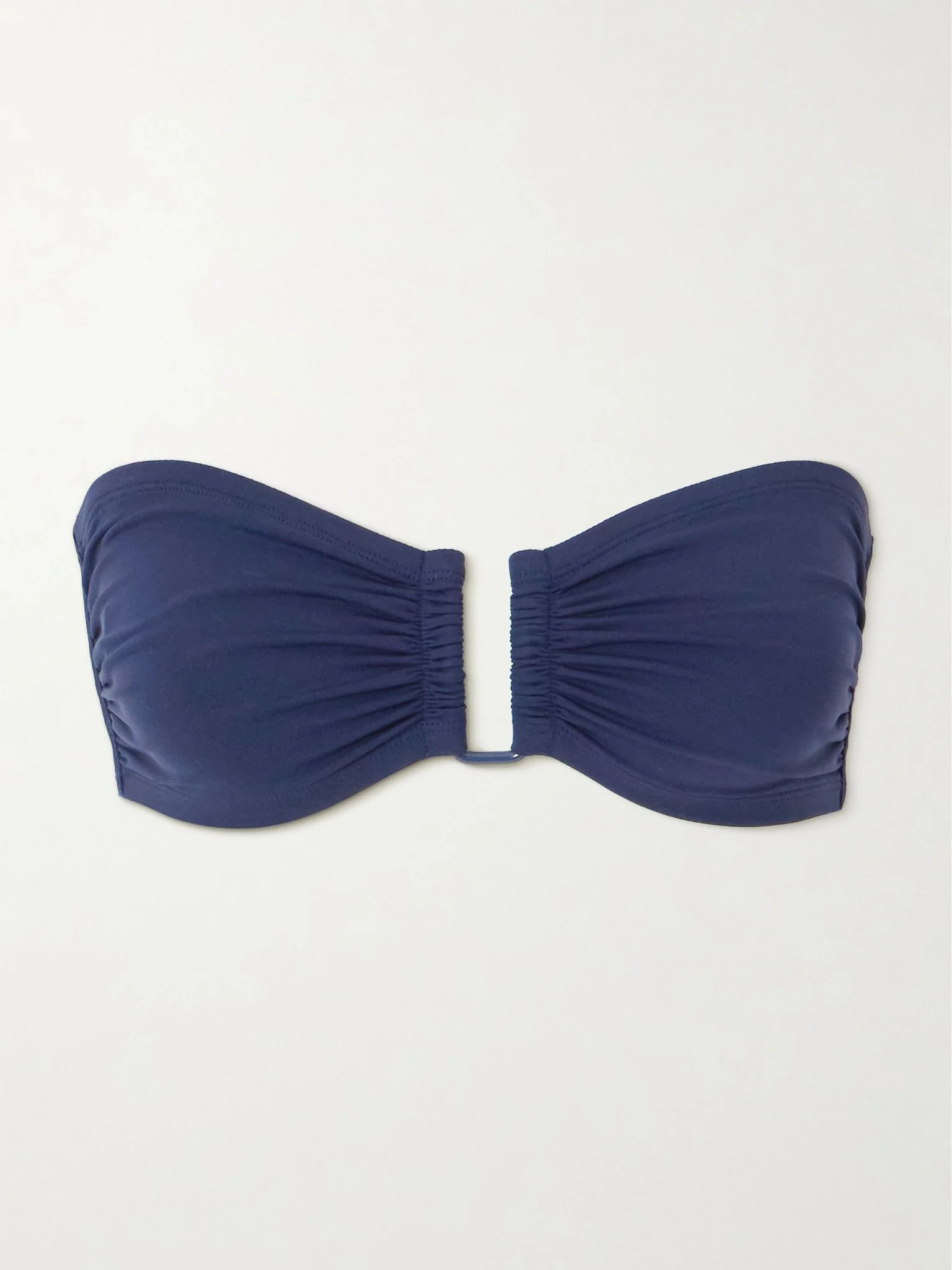 Eres' 'Show' bikini top is part of the label's 'Les Essentiels' collection – a capsule of timeless swimwear. It's crafted from the brand's signature smoothing and sculpting peau douce fabric and boned through the sides for light support. Small to size. See Size & Fit notes. Size & Fit - Fits small to size, take one size larger than normal - Those with a C cup or above may wish to take a further size up - French sizing Details & Care - Navy stretch-polyamide - Clasp fastening at back - 84% polyamide, 16% elastane - Machine wash - Designer color: Nautique - Lotion, sunscreen, oil and chlorine can cause discoloration of this item; this is not a manufacturing defect. Please follow care instructions to keep your swimwear in the best condition