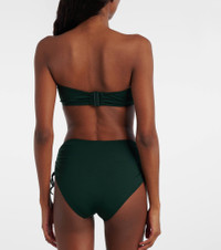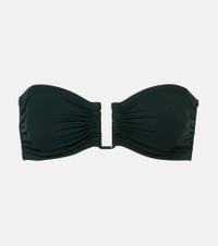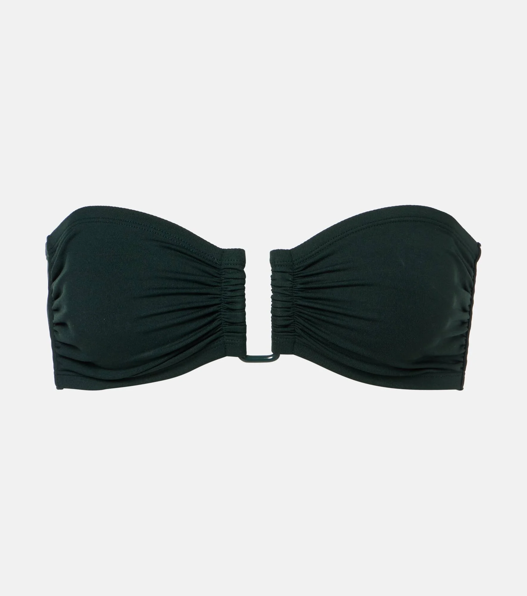 Having revolutionized swimwear in the 1970s, Eres has a legacy of elegant and streamlined silhouettes that flatter every figure. The Show bikini top boasts an unlined, strapless silhouette with side boning, gathering, and a U-shaped link at the center. Product Details - Material: 84% polyamide, 16% elastane - Care instructions: machine wash at 30 degrees - Made in Italy - Color: green - Designer color name: Scarabee - Closure: toggle fastening - Item number: P01148045 Size & Fit - True to size - Strapless - Unpadded Top - The model seen in the picture is 178cm-5'10", cup size B, and wearing a size FR 38