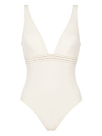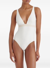 Sillage plunge-neck swimsuit Highlights - White - Deep v-neck - Thin straps - Contrasting band detail - High-cut leg - Be mindful to try on swimwear over your own garments. Made in Italy Composition Polyamide 77%, Spandex/Elastane 23%