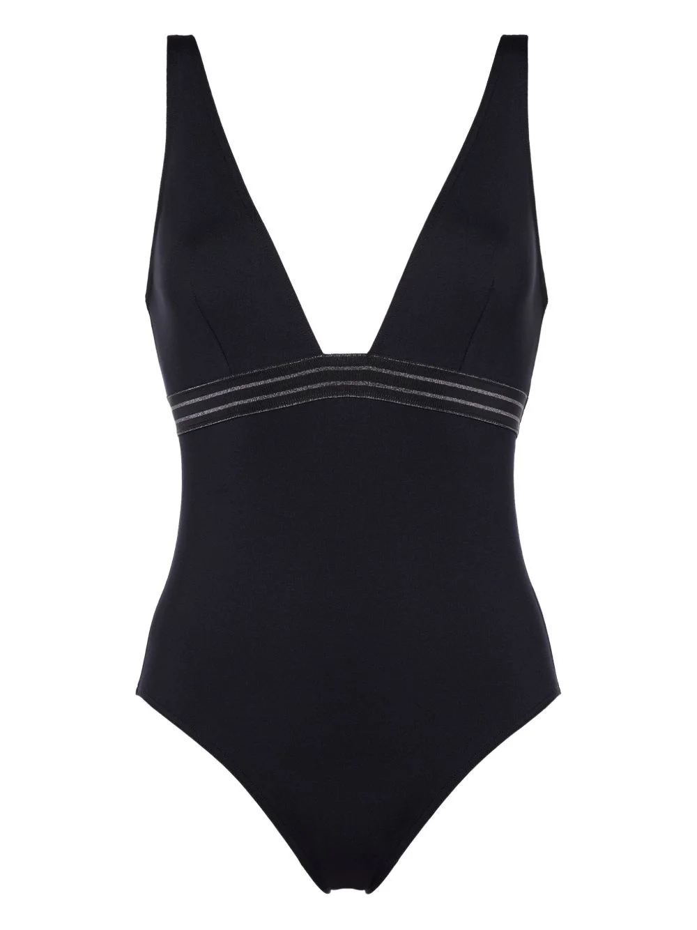 Sillage plunge-neck swimsuit Highlights - Black - Deep v-neckline - Contrasting detail at waist - Thin shoulder straps - High-cut leg - Minimal coverage - Be mindful to try on swimwear over your own garments. Made in Italy Composition Polyamide 77%, Spandex/Elastane 23%