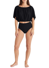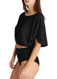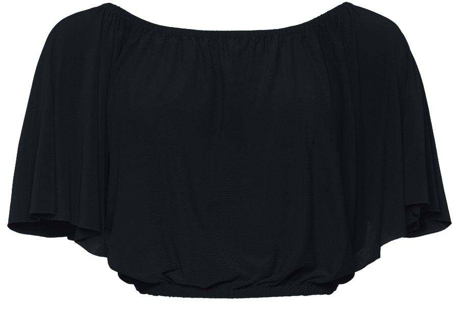 DESCRIPTION - Crop top - Elasticated neckline - Elasticated waist - Short butterfly sleeves DETAILS AND CARE MATERIAL: Secondary fabric : 94% Polyamide / 6%Elastan COLOR: ultra COUNTRY OF MANUFACTURE: France PRODUCT CODE: ERENJ9W8BCK1T1AA00