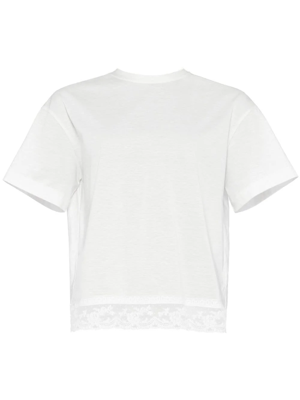 Songe cotton T-shirt Highlights - White - Cotton - Lace trim - Crew neck - Drop shoulder - Short sleeves - Straight hem Imported Composition Cotton 100% SIZE & FIT FittingInformation Designed to be unstructured, offering a loose fit throughout This piece fits true to size – take your usual size Washing instructions Machine Wash