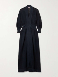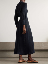 EDITORS'NOTES Eres's maxi dress has been carefully crocheted in Italy from a cotton-blend and has open stripes that enhance the airy feel. It's designed with billowy sleeve and nips in at the waist before falling to a floaty, split hem. Wear yours to beachside dinners or when exploring the town. SIZE & FIT Model measurements: - Fits true to size, take your normal size - Designed for a slim fit - Lightweight knit - Model is 177cm/ 5'10" and is wearing a FR 36 - Bust: 79cm/ 31" - Waist: 61cm/ 24" - Hip: 89cm/ 35" DETAILS & CARE - Navy cotton-blend - Slips on - 60% cotton, 40% viscose - Dry clean