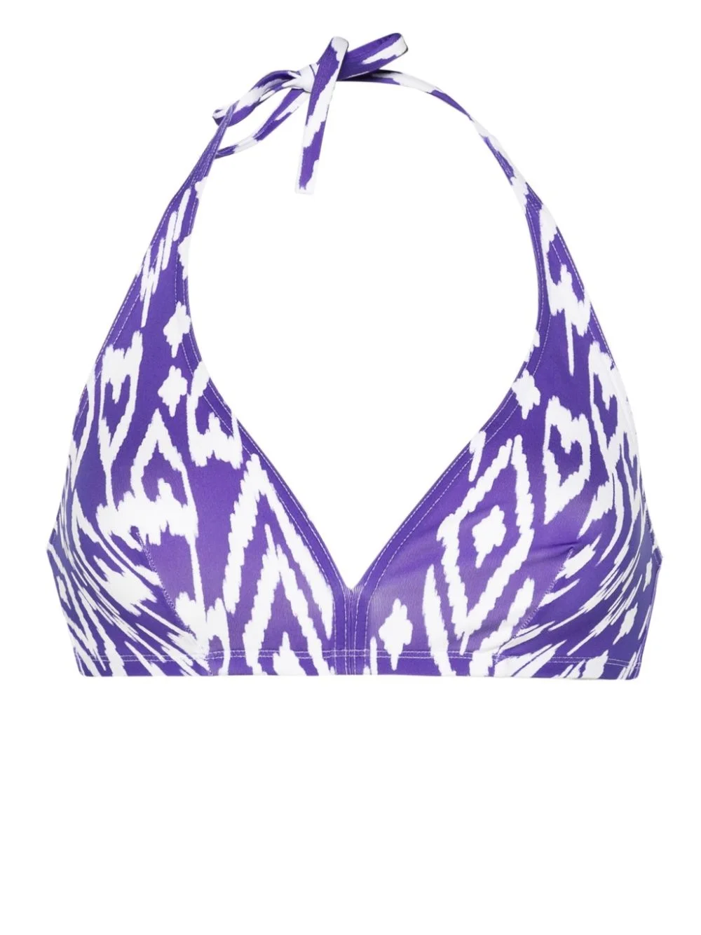 Storm full-cup triangle bikini top Highlights - Purple/white - Stretch-design - Abstract pattern print - Full triangle cup - Halterneck tie fastening - Rear clasp fastening Made in France Composition Polyamide 84%, Spandex/Elastane 16% SIZE & FIT FittingInformation Designed to fit close to the body, offering minimal flexibility and movement This piece fits small – take one size up