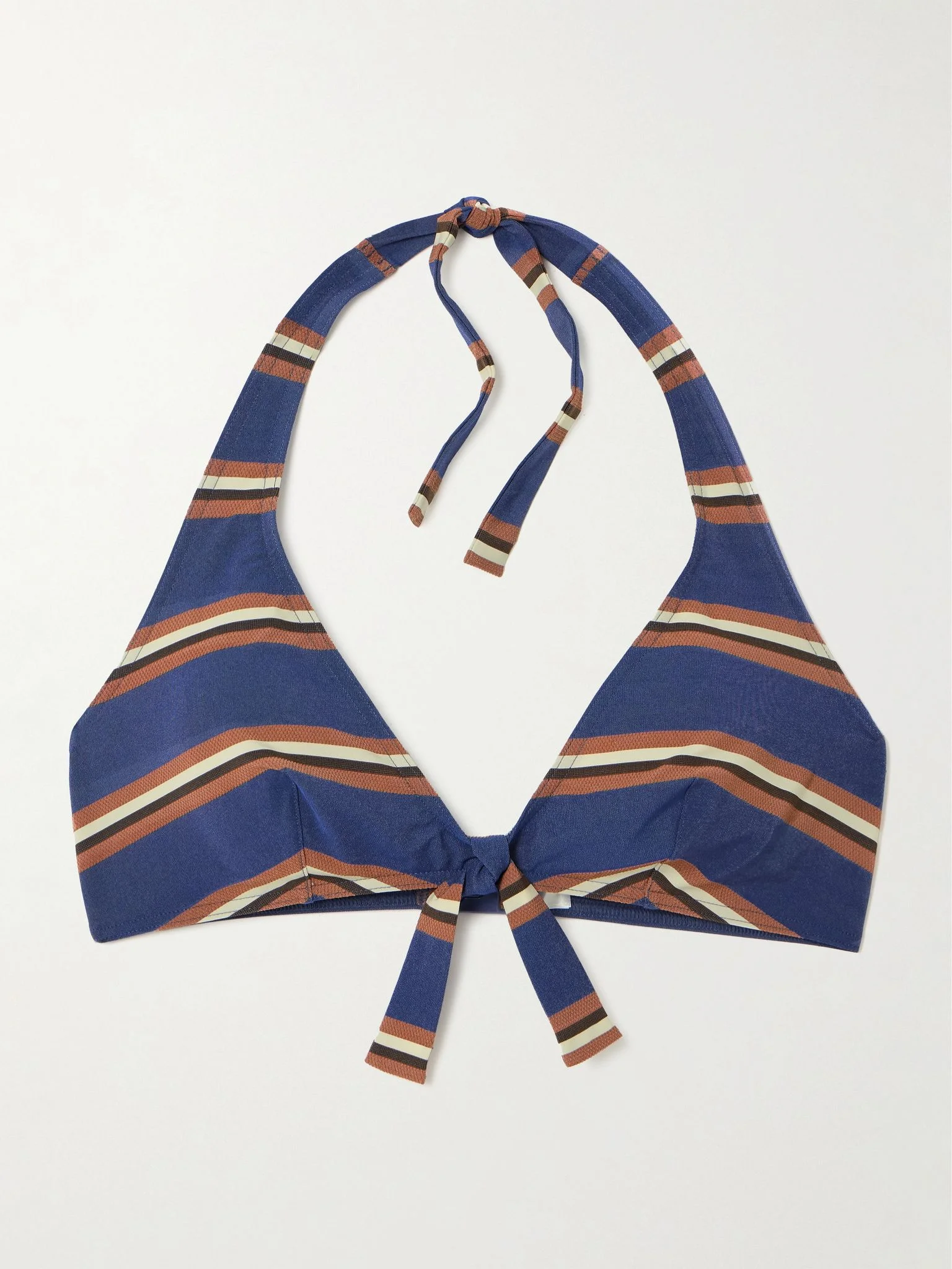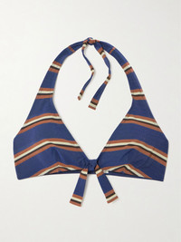 Eres' 'Cap' bikini top evokes retro styles. Made from quick-drying stretch-fabric, it's jacquard-woven with deckchair-inspired stripes and has adjustable halterneck straps and internal side boning for support. Complete the set with the coordinating briefs in our edit. Small to size. See Size & Fit notes. Size & Fit - Fits small to size, take one size larger than normal - Model is 175cm/ 5'9", bra size 32C and is wearing a FR 38 Details & Care - Multicolored stretch-polyamide - Ties at neck, clasp fastening at back - 82% polyamide, 18% elastane - Machine wash - Designer color: Rayure Denim - Lotion, sunscreen, oil and chlorine can cause discoloration of this item; this is not a manufacturing defect. Please follow care instructions to keep your swimwear in the best condition