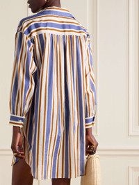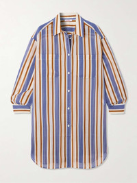 EDITORS'NOTES Eres' shirt is made from airy, breathable cotton-voile with vibrant vertical stripes. Designed in a relaxed, longline shape, it has a neat collar and chest patch pockets. Wear yours as a coverup over one of the brand's swimsuits or layered over a tank on warm days. SIZE & FIT Model measurements: - Fits true to size, take your normal size - Designed for a relaxed fit - Lightweight, non-stretchy fabric - Model is 177cm/ 5'10" and is wearing a size Small - Bust: 81cm/ 32" - Waist: 62cm/ 24.5" - Hip: 89cm/ 35" DETAILS & CARE - Blue, white and brown cotton-voile - Button fastenings through front - 100% cotton - Machine wash - Designer color: Sailor Sirene