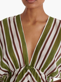 Summer striped dress Highlights - Green - V-neck - Three-quarter length sleeves - Semi-sheer construction Imported Composition Cotton 100%